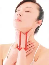 手のひらで首の前面を軽く握り、手を左右交互に動かしながら、鎖骨に向かって首の前面をさすり下ろす。