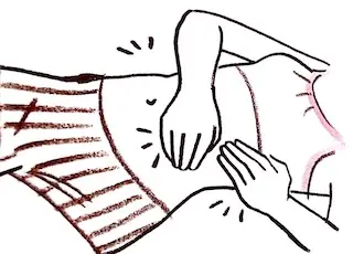 親指と他の四指でお腹の脂肪をつまみ、右手と左手を互い違いに動かしてもみます。(下腹部をまんべんなく)
