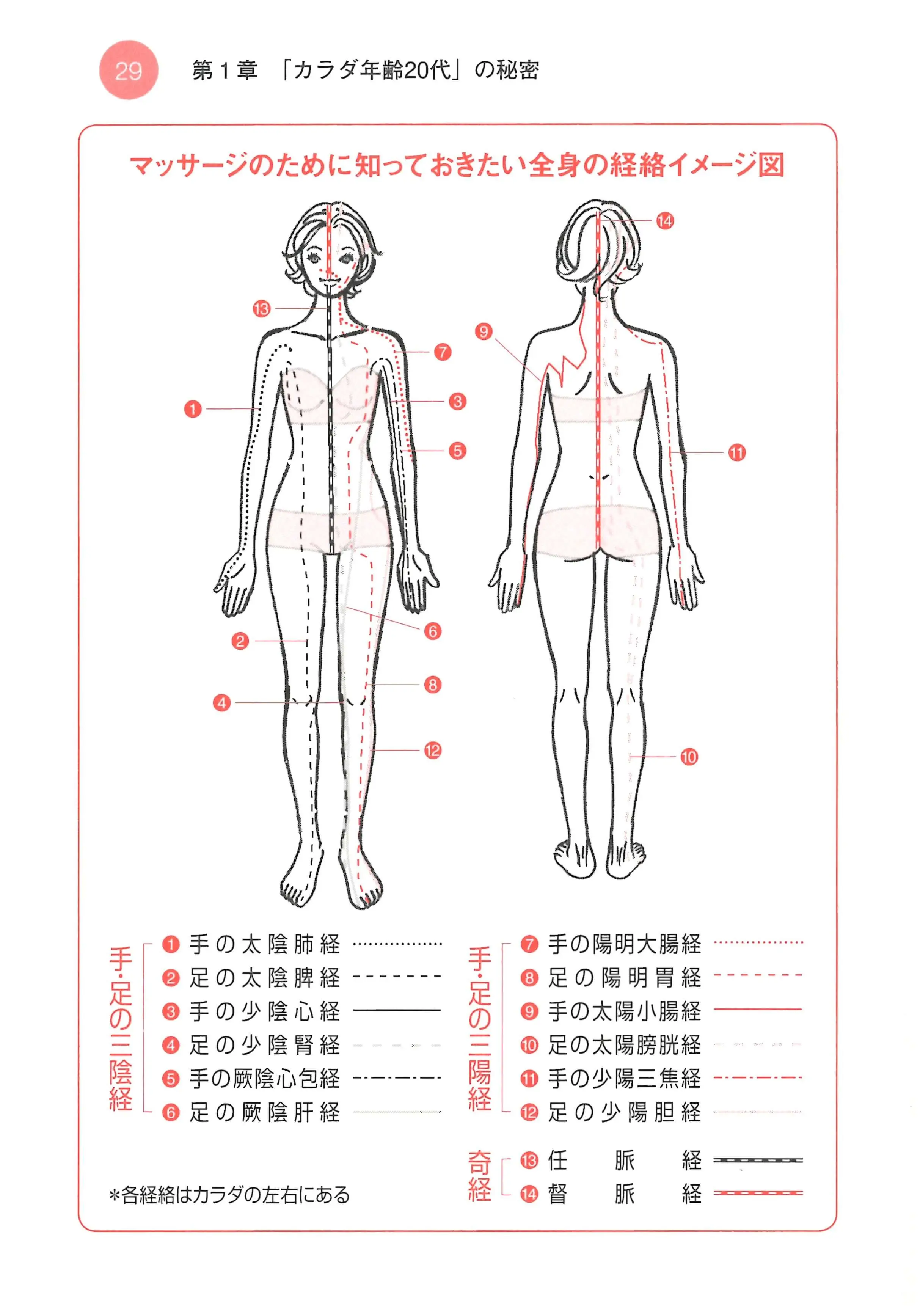 この本でご紹介する経絡リンパマッサージは、カラダの内側から変えていくことで心身ともにみずみずしい美しさと若さを維持することを目的としています。体表面の皮膚を刺激することにより、精神にまでよい影響を与えることができるのです。